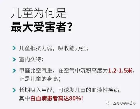 荃芬專業(yè)凈醛服務施工中,就有許多這樣的用戶案例:裝修幾年后檢測甲醛超標,本身也沒有什么特殊反應,拿到檢測報告大家都很驚訝,其實甲醛釋放周期是3-15年,它不是一個可以短時間完全釋放的污染物,裝修5年內(nèi)的房子、室內(nèi)場所是甲醛超標重災區(qū),而兒童又是甲醛高敏感人群。數(shù)據(jù)統(tǒng)計,白血病患者中兒童占50%,且多集中在7歲以內(nèi)。